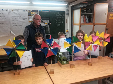 Schlussendlich konnten alle Ihr Windrad zusammen mit einer Urkunde stolz mit nach Hause nehmen.
