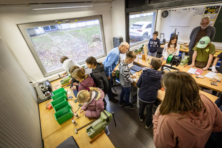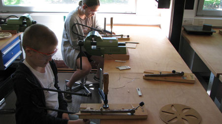 Hans hatte wieder eine ganze Menge Kreisel-Bausätze vor-bereitet und der Kreiselbau war, wie immer, sehr begehrt. Die Schüler waren mit voller Begeisterung bei der Sache.