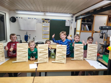 Die zwei Kurse Ende November und Anfang Dezember waren wieder mal ein richtiger Erfolg. Die Kinder waren mit Feuereifer bei der Sache und alle Kugelbahnen funktio-nierten zum Schluss anstandslos - ein tolles Ergebnis.
