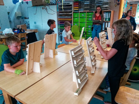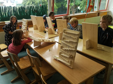 Zusammen mit ein paar Murmeln durfte jedes Kind seine selbstgebaute Kugelbahn natürlich mit nach Hause nehmen.
