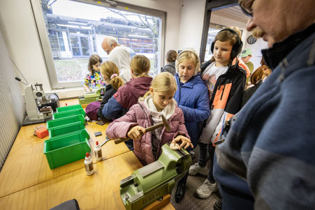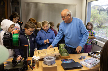 Thomas hatte unseren 3D Drucker am Laufen, was ebenfalls großes Interesse hervorrief. Die Schüler, die wollten, konnten dann noch einen kleinen Kreuzschlitz-Schrauben-dreher aus dem 3D Drucker mitnehmen. Das hat sie auch begeistert.