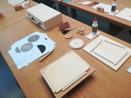 Zum Abschluss konnten die Beteiligten ihre Kreisel samt Zubehör in einem Holzkoffer mit nach Hause nehmen. Wir hoffen das auch im heimischen Umfeld mit den Kreiseln reichlich weiter experimentiert wird.