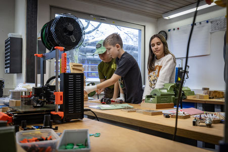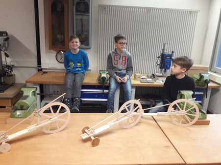 Zum einen die Technik AG mit dem bekannten Mausefallen Fahrzeug. Hier wurden die ersten Teile vorbereitet.
