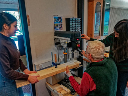 Da war jedoch auch noch einiges an Löchern zu bohren, zu Sägen und Schrauben zu setzen, Bretter zu schleifen, anzuzeichnen und abzumessen.
