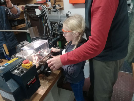 Als fortschreitende Aktivität hat nun die Metallbearbeitung begonnen, bei der mehr Präzision erforderlich ist und mehr körperlicher Einsatz, Metall ist eben zäher als Holz. Aber erste Schritte in Form von Nietverbindungen sind bereits durchgeführt. Nun folgt die Verbindungstechnik mittels Schrauben.