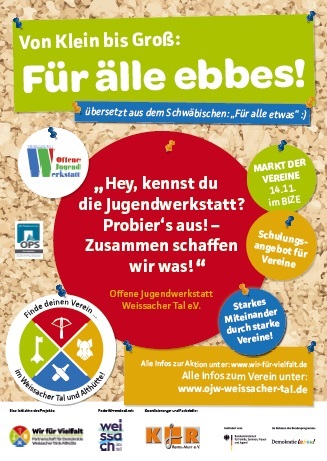 Auch dieses Jahr haben wir uns wieder als OJW am Markt der Vereine des Kreisjugendrings beteiligt. Wie letztes Mal, haben wir auch diesesmal unser Domizil im Lutz-Gürtler Pavillon dafür verwendet. Insgesamt empfanden wir die Re-sonanz ganz gut. Das Interesse der Schüler war insgesamt sehr gut. Wir hoffen, dass es sich dann auch an der Beteiligung in der Technik AG und in der Mitgliedschaft der Offenen Jugendwerkstatt niederschlägt.